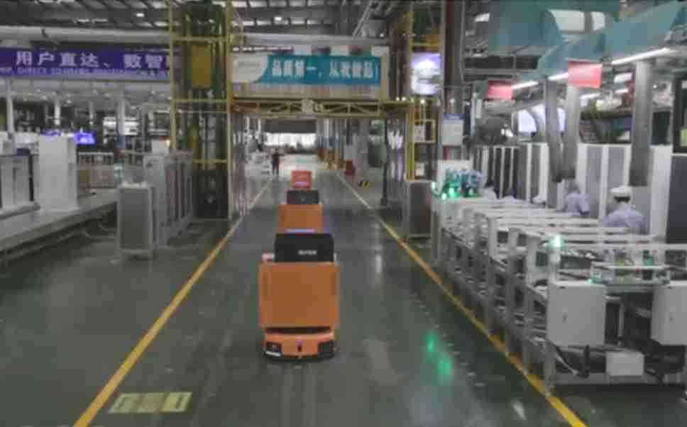 为车载冰箱物流配送打造的智能解决方案,,,,包含产中物流通过潜伏举升AMR搬运至线边,,,,产后成品物流智能仓储,,,流程包含产中物流智能齐套入库,,,,线边安灯叫料AMR智能配送至线边,,成品入库、、、、出库,,,通过无人堆高车机器人,,,,智能仓储管理替代人工作业管理,,,实现更高存储、、、更高效率、、、、更具柔性化的解决方案。。。