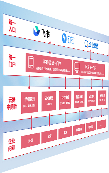 对协作平台提供支持服务,,支持企业应用与协作平台对接,,,包含组织同步、、、、消息集成、、待办集成等。。。。支持目前主流的协作平台:钉钉、、企微和飞书。。。